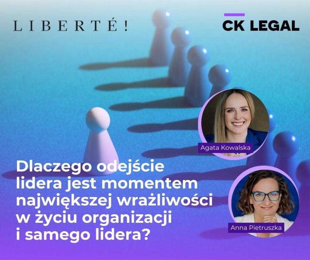 Przeczytaj nowy artykuł ekspertek CK LEGAL dla E-Miesięcznika Liberté! – „Dlaczego odejście lidera jest momentem największej wrażliwości w życiu organizacji i samego lidera” – i dowiedz się, jak sprawić, żeby sukcesja stała się impulsem do transformacji, która wzmocni firmę, zamiast ją osłabić.