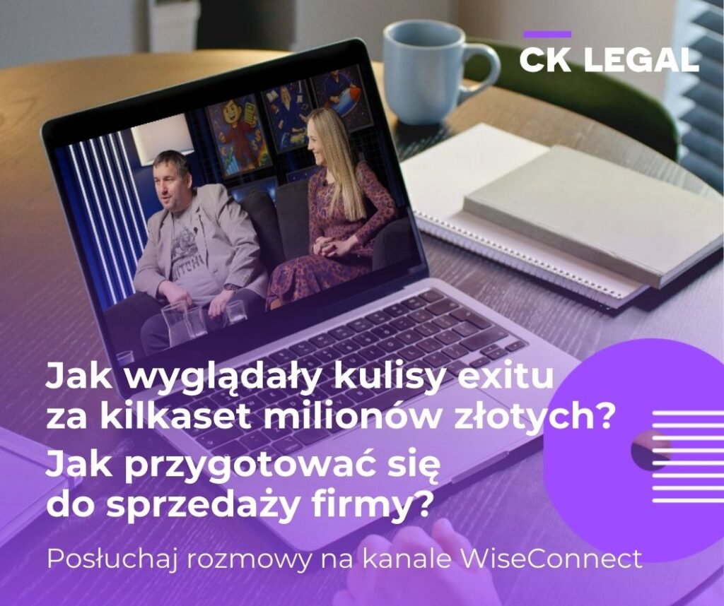 Na kanale WiseConnect pojawił się nowy odcinek podcastu z udziałem Agaty Kowalskiej z CK LEGAL oraz Konrada Pawlusa, inwestora, współtwórcy SALESmanago. Transakcja sprzedaży SALESmanago do funduszy Perwyn oraz SilverTree Equity, przy której doradzali eksperci CK LEGAL, opiewała na kilkaset milionów złotych.