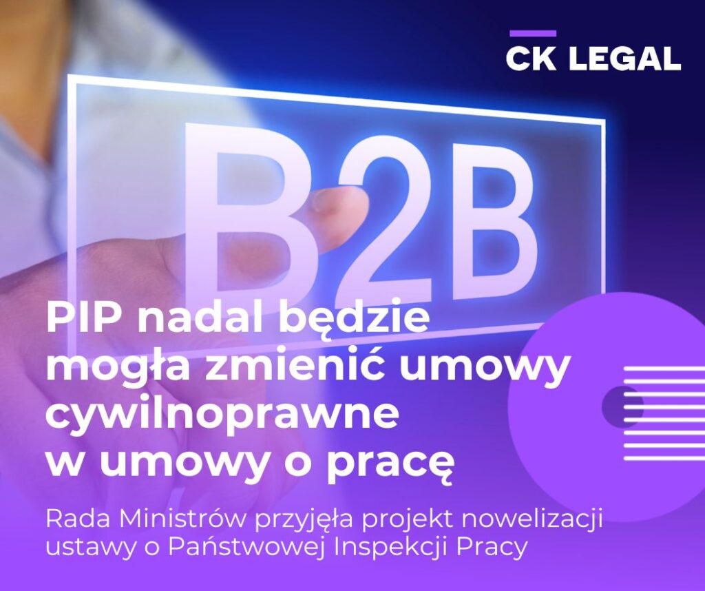 17 lutego Rada Ministrów przyjęła projekt nowelizacji ustawy o Państwowej Inspekcji Pracy oraz niektórych innych ustaw. Mimo wcześniejszych zapowiedzi ograniczenia uprawnień, jedno z kluczowych narzędzi pozostało bez zmian. Jeżeli mianowicie Inspektor Państwowej Inspekcji Pracy uzna, że umowa cywilnoprawna (w tym B2B) w rzeczywistości spełnia cechy umowy o pracę, nadal będzie mógł wydać decyzję administracyjną stwierdzającą istnienie stosunku pracy.
