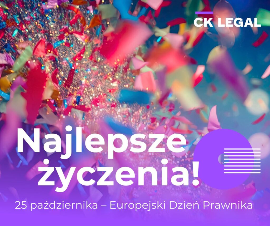 25 października obchodzimy Europejski Dzień Prawnika! Z tej okazji składamy najlepsze życzenia całemu zespołowi CK LEGAL, wszystkim prawnikom i prawniczkom oraz osobom, które dzień w dzień wspierają prawników w ich obowiązkach. W świecie, w którym przepisy unijne i krajowe nieustannie się zmieniają, Wasza wiedza, czujność i zaangażowanie mają szczególną wartość.
