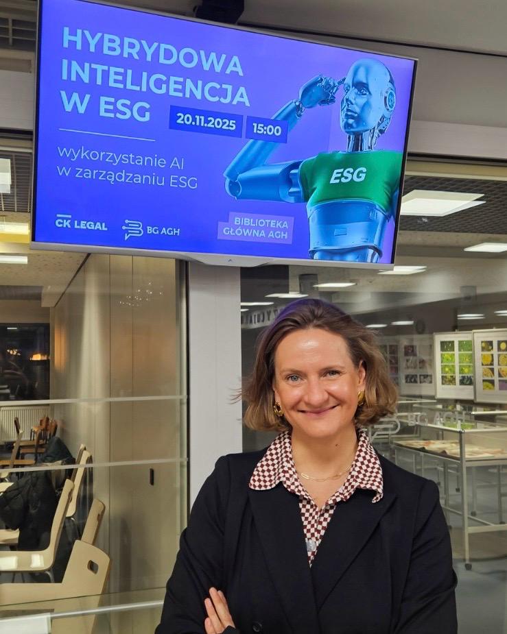 20 listopada o godzinie 15:00 w Bibliotece Głównej AGH w Krakowie Anna poprowadzi wykład „Hybrydowa inteligencja w ESG: wykorzystanie AI w zarządzaniu ESG”. Anna opowie między innymi o tym, jak z pomocą sztucznej inteligencji analizować dane, mapować ryzyka i wzmacniać ład korporacyjny.